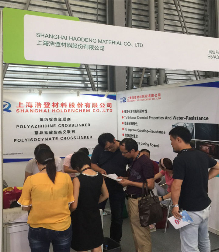 此次展會我們展示了公司產(chǎn)品有氮丙啶交聯(lián)劑及聚異氰酸酯交聯(lián)劑等系列產(chǎn)品,吸引了很多客戶駐足訪問。浩登材料的業(yè)務(wù)人員詳細(xì)的為每一位客戶答疑解惑,與客戶深入探討產(chǎn)品的性能及應(yīng)用。同時(shí)也為客戶提供產(chǎn)品應(yīng)用方面遇到的問題和解決方案。