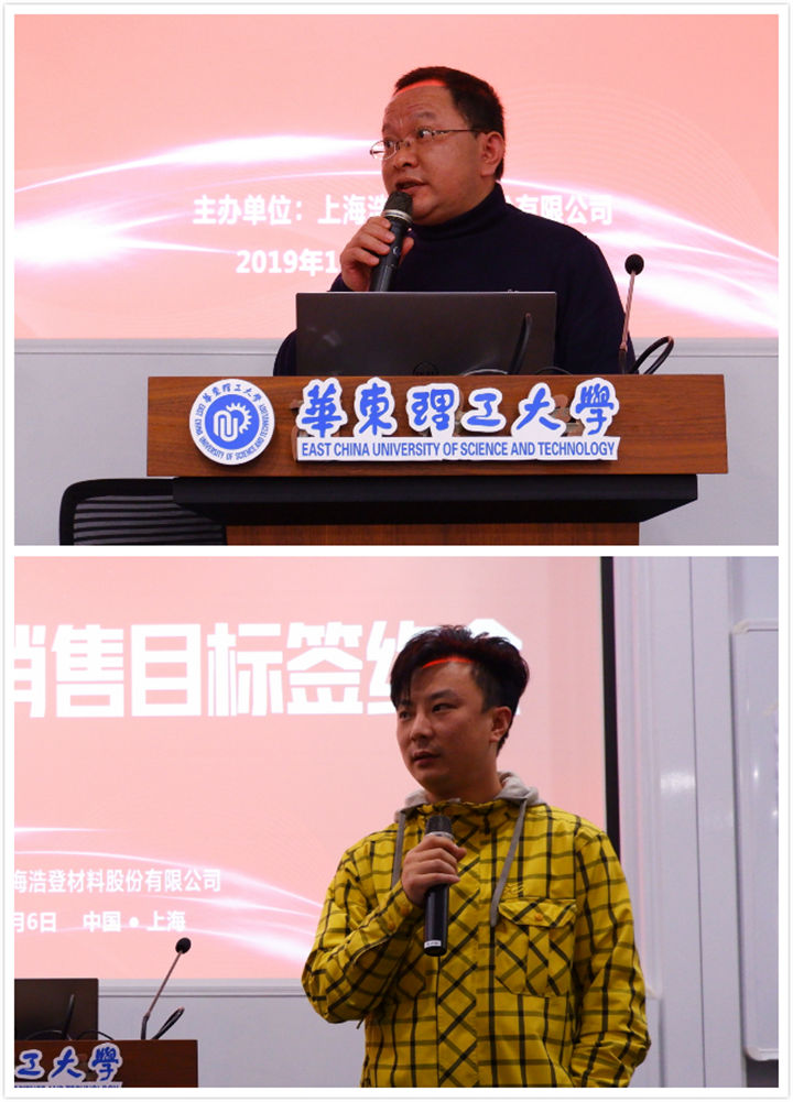 2019年上海浩登材料股份有限公司銷(xiāo)售目標(biāo)簽約會(huì)于2019年1月6日在上海華東理工大學(xué)商學(xué)院大樓401室舉行。公司董事長(zhǎng)沈健先生、公司各職能部門(mén)負(fù)責(zé)人以及江蘇康樂(lè)佳材料有限公司總經(jīng)理吳天平先生、寧夏倬昱新材料科技有限公司總經(jīng)理趙春霞女士、銷(xiāo)售中心所有員工、上海健倬生物科技有限公司所有員工參加了本次會(huì)議。